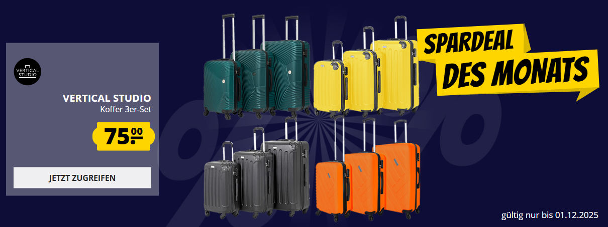Bei SportSpar.de bekommt ihr aktuell das VERTICAL STUDIO “Fredrikstad” Koffer 3er-Set 20″ 24″ 28″ in verschiedenen Farben für 75€ inkl. Versand!