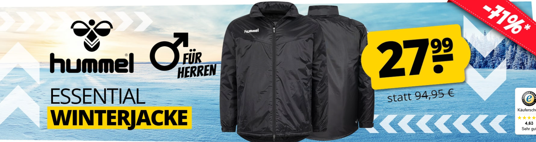 Bei SportSpar gibt es aktuell die hummel Essential Bench Jacket Herren Winterjacke mit 71% Rabatt! Ihr zahlt 27,99€ statt 94,95€! Ersparnis: 66,96€