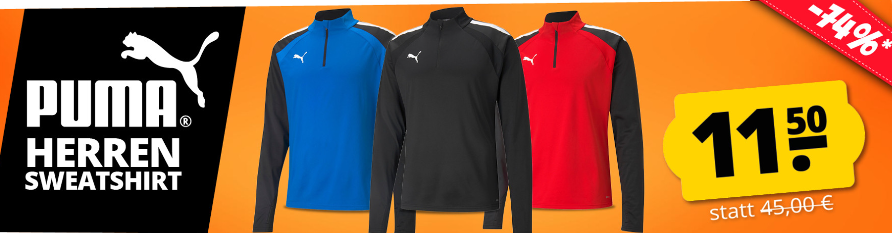 Bei SportSpar gibt es aktuell die PUMA teamLIGA 1/4 Zip Herren Sweatshirt – verschiedene Farben – mit 74% Rabatt! Ihr zahlt 11,50€ zzgl. Versand statt 45€! Ersparnis: 33,50€