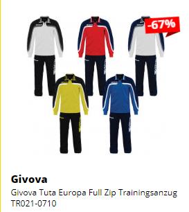 Givova Tuta Europa Full Zip Trainingsanzug für 15,99€ statt 47,99€ inkl. Versand. Ersparnis: 32,-€