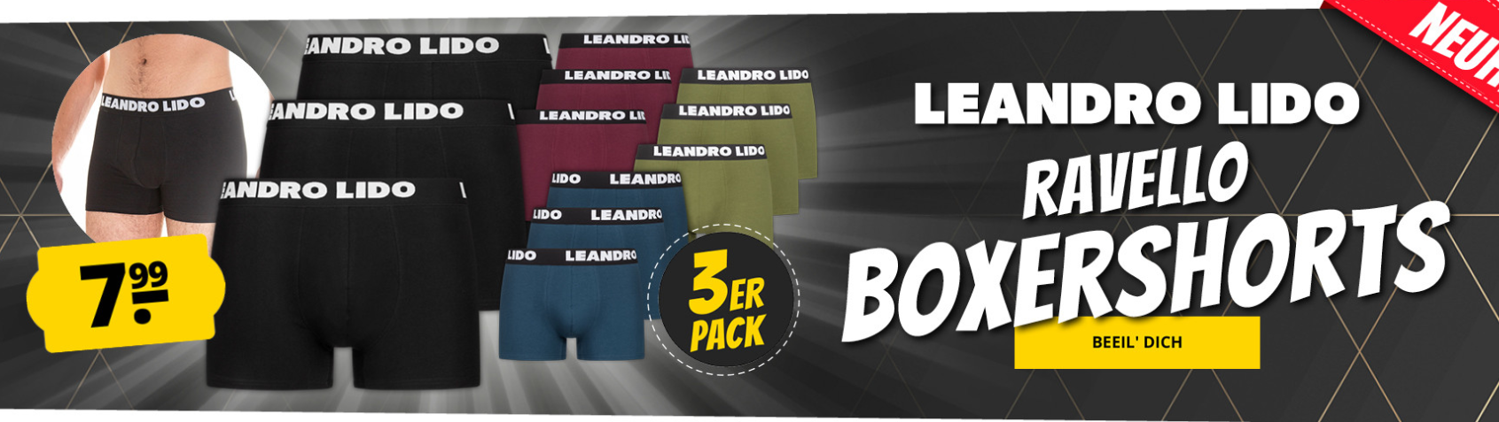 LEANDRO LIDO “Ravello” Herren Boxershorts 3er-Pack zum Sparpreis. Artikel in verschiedenen Farben und zum Preis von 7,99€ zzgl. Versand!