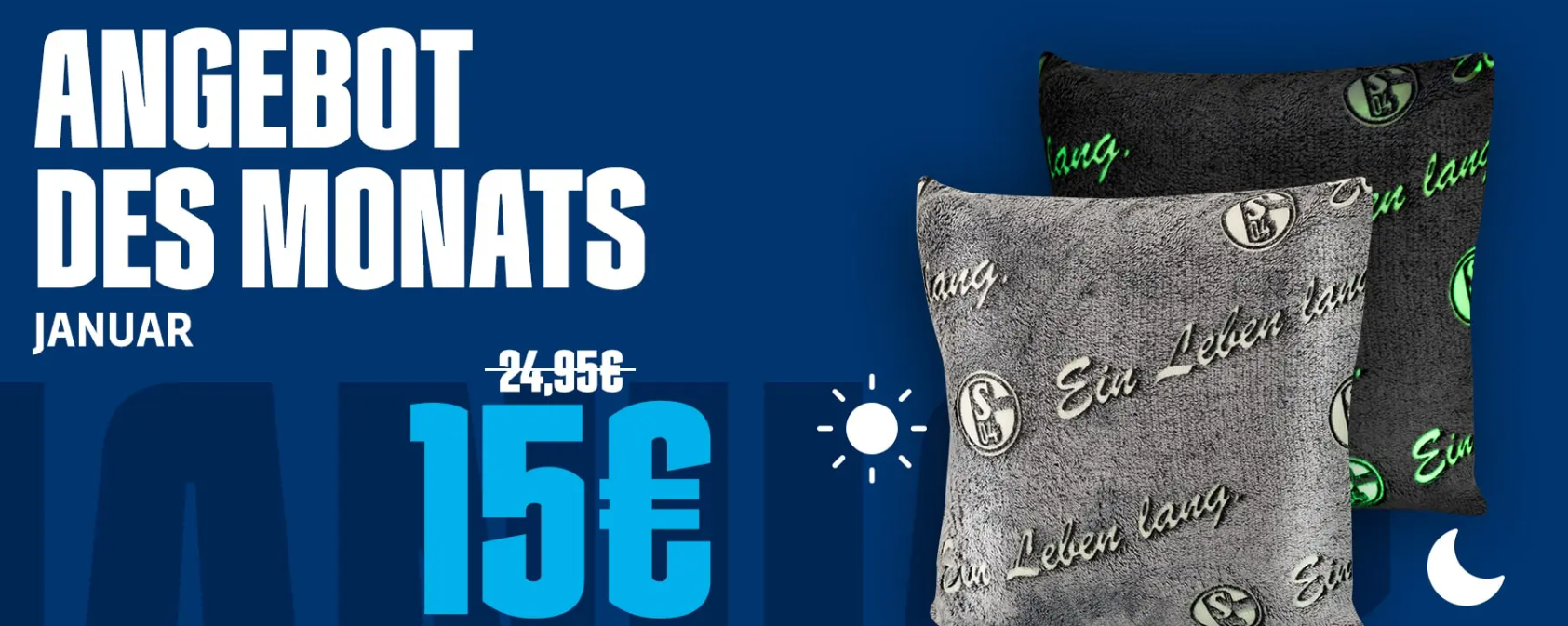 Im Store.schalke04 könnt ihr aktuell im Angebot des Monats das KISSEN GLOW IN THE DARK für 15€ statt 24,95€ zzgl. Versand! Ersparnis: 9,95€