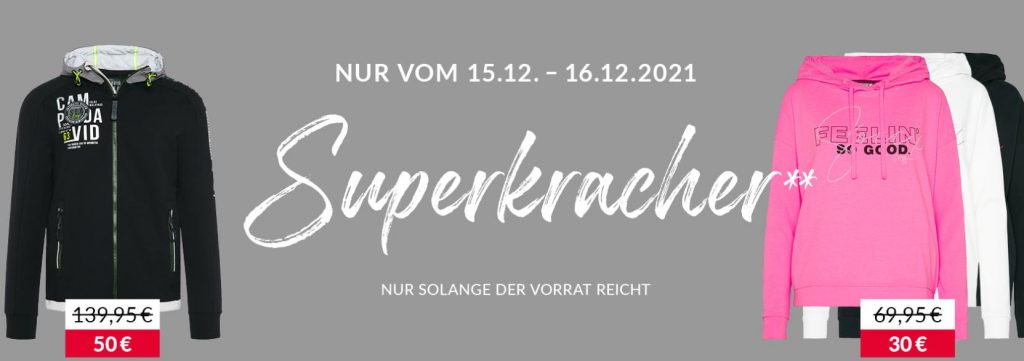Superkracher bei Camp David – Soccs – aktuell gibt es den SALE mit bis zu 70% Rabatt auf ausgewählte Artikel + Super Deal Kollektion mit 30% Rabatt!
