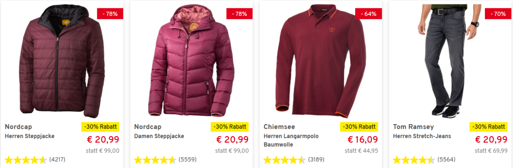 Entdeckt eine große Auswahl an reduzierten Markenprodukten aus den Bereichen Mode, Schuhe, Haushalt, Garten und mehr. Nur solange der Vorrat reicht – jetzt zugreifen und sparen!