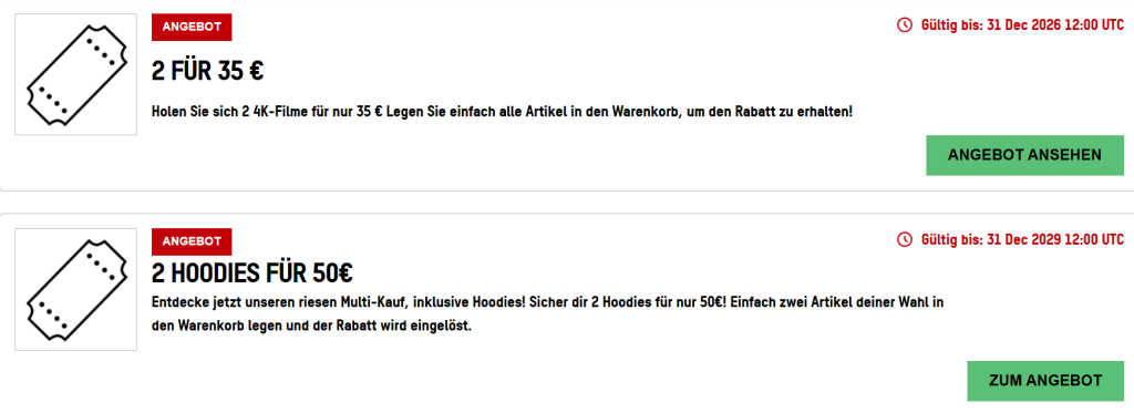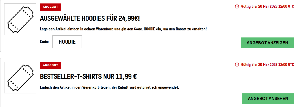 Sicher dir hier die besten Angebote und Gutscheine! Werf einen Blick auf unsere Liste der exklusiven Angebote und Rabatt‑Codes und du wirst bestimmt etwas finden um Geld zu sparen. Allerdings sind unsere Angebote immer nur für eine begrenzte Zeit verfügbar, also warte nicht zu lange.