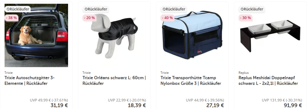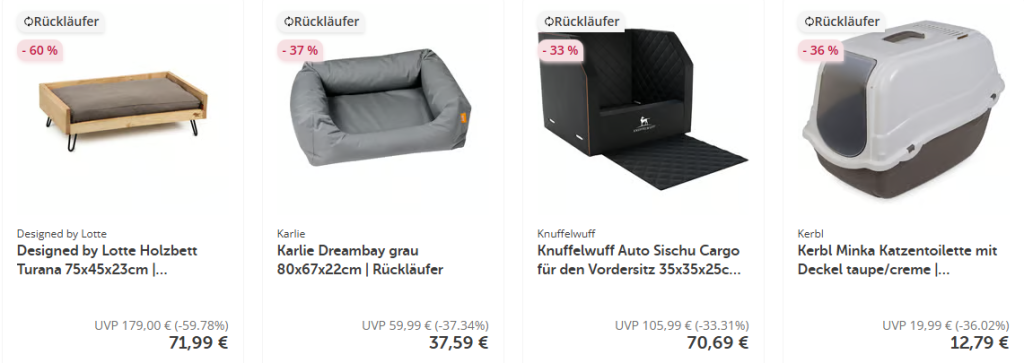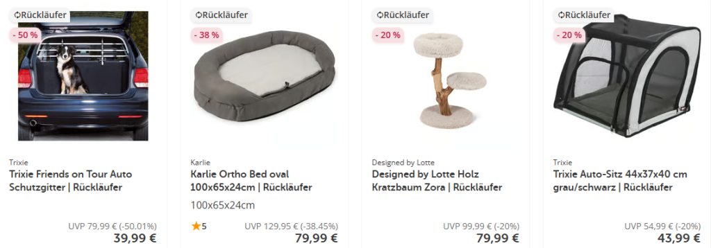 Diese Produkte haben den Weg zu uns zurückgefunden, wurden geprüft und warten jetzt auf ein neues Zuhause – natürlich stark reduziert! Entdecke unsere Rückläufer für dein Tier – in Top-Zustand und mit vollem Sparpotenzial. Schnell sein lohnt sich: Nur solange der Vorrat reicht!