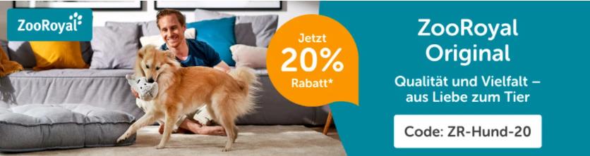 Spart jetzt bei ZooRoyal 20% auf den Kauf von ZooRoyal Original Hunde-Ausstattung!