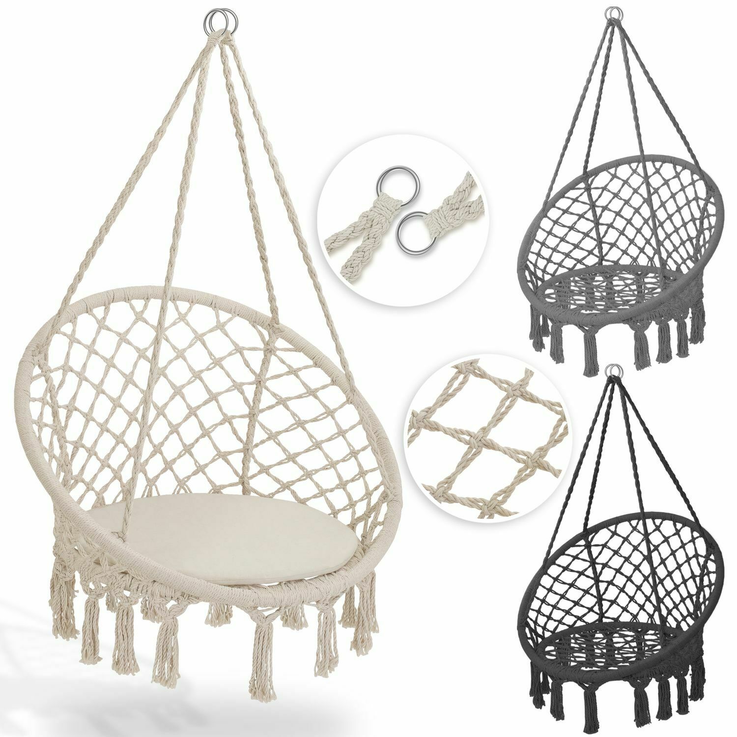 HOCHWERTIG: Der Hängesessel wird durch 4 Seile mit 2 Stahlringen verbunden. Die maximale Belastbarkeit liegt bei 150 kg.