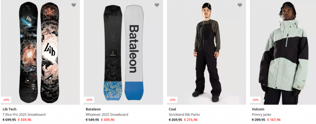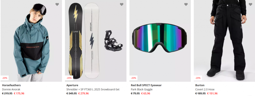 Deal Days – 20% Rabatt auf Snowwear, Snowboard- & Freeski-Produkte. Ausgenommene Brands: Nidecker, Capita, Deeluxe, Union, Jones.