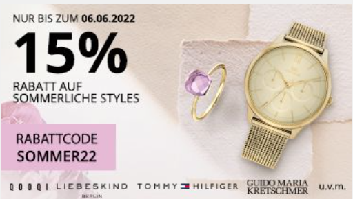 NUR NOCH FÜR KURZE ZEIT – Preisvorteil auf sommerliche Styles – Sichert euch nur bis zum 06.06.2022 mit dem Code: SOMMER22 einen Preisvorteil von -15% auf ausgewählte sommerliche Styles von Marken wie QOOQI, Tommy Hilfiger oder Liebeskind Berlin!