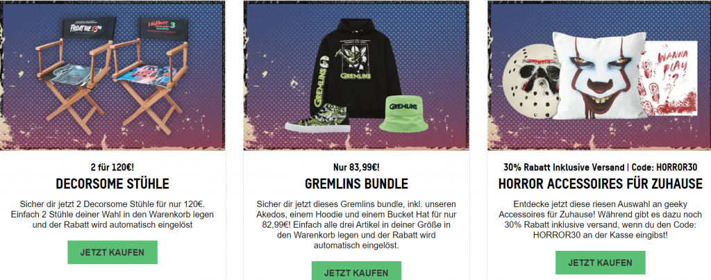 Zum Beispiel gibt es die Terror Kollektion mit 30% Rabatt + versandkostenfrei!